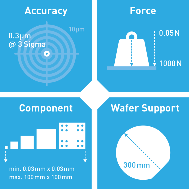 - Placement accuracy of 0.3 µm @ 3 Sigma on small to large substrates