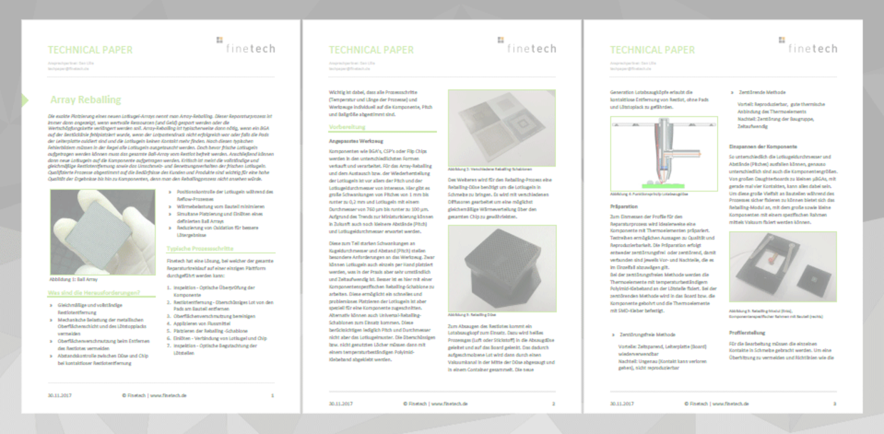 Abstract: Precise placement of a new solder ball array is called array reballing. This repair process is applied when saving valuable resources (and money) is crucial or when the value chain has to be extended. Array reballing is typically needed when a BGA has been misplaced on the placement line, when solder paste pressure has not been sufficient, or when the pads of the circuit board are oxidized and there is no contact through the solder balls anymore. These are the typical defects usually leading to the solder balls being replaced. But before new solder balls can be placed, the residual solder must be removed from the entire ball array. And then new solder balls can be placed onto the component. Critical are usually the complete and even removal of the residual solder as well as the remelting and the wetting behavior of the new solder balls. Qualified processes tailored to customer needs and products are essential for high quality results, especially for those components which usually would not be suitable for the reballing process.