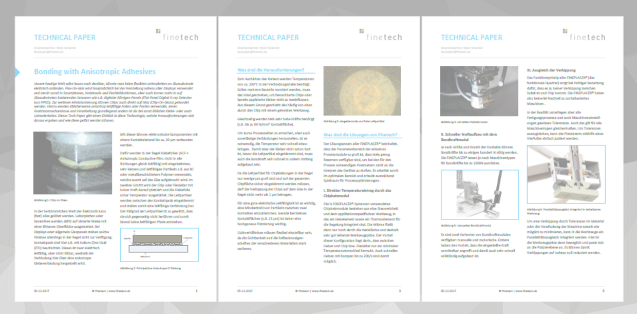 Abstract: It’s hard to imagine a world without the ability to electrically connect flexible PCB to glass substrates. Flex‐On‐Glass is a preferred solution for most kinds of modern displays and can be found in smartphones, notebooks and flat screens just as much as in glass substrate based sensors, such as flat panel digital X‐ray detectors (FPXD). With ongoing miniaturization, chips are increasingly bonded directly to the glass (Chip‐On‐Glass). Usually, this goes along with using anisotropic conductive foils or pastes which have a fundamentally different functional principle compared to common adhesives or solder materials and also need to be processed differently. This technical paper gives an introduction to the technology, describes typical challenges and proven solutions.