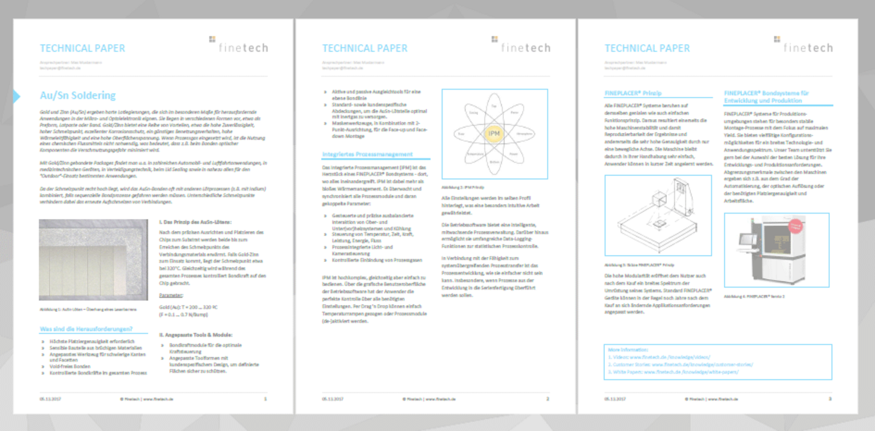 Eutectic bonding with Au/Sn provides a number of advantages, e.g. high stability, high melting temperature, excellent resistance to corrosion, good wetting behavior, high thermal conductivity and high surface tension. If process gas is integrated into the process, the use of flux is not required, meaning that during bonding of e.g. optical components the risk of pollution is diminished.