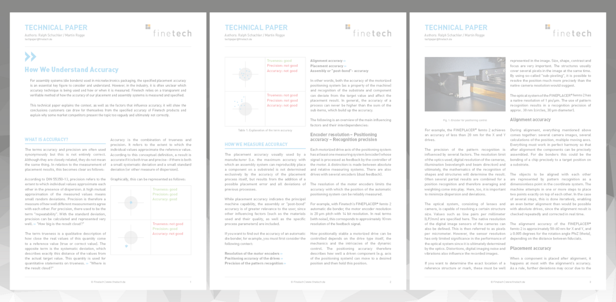 This technical paper explains the context, as well as the factors that influence accuracy, it will show conclusions customers can draw for themselves from the specified accuracy of Finetech products and explain why some market competitors present the topic too vaguely and ultimately not correctly.
